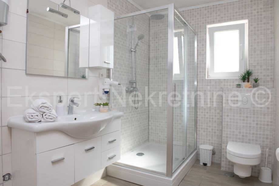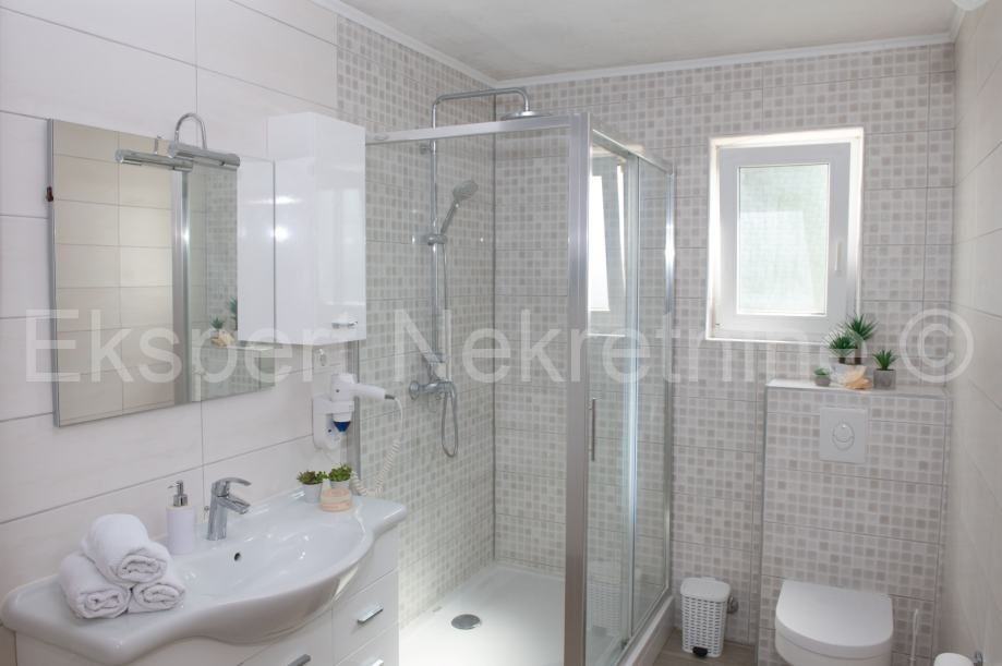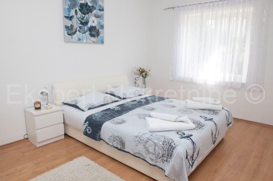 Podstrana,Strožanac,dvojna kuća 350 m2 s vrtom cca 100 m2 i dva vanjska parking mjesta.Kuća ima pogled na more i grad Split.Prodaje se potpuno namještena. U prizemlju kuće se nalazi kuhinja s dnevnim boravkom , dvije sobe, jedna s bračnim krevetom a jedna sa dva odvojena kreveta, i kupaona.Na katu se nalazi dvije sobe s balkonima s pogledom na more , i jedna soba s pogledom na vrt.Vrt cca 100m2 s kaminom i vrtnom kućicom s velikim okruglim stolom za 10 osoba.Kuća je udaljena 500 m od plaže.Papiri uredni 1/1.