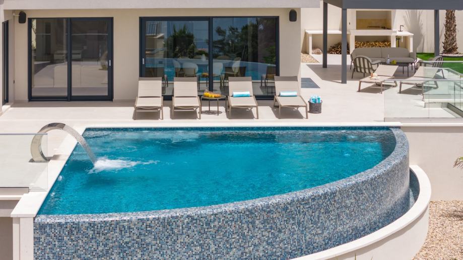 PODSTRANA POSREDUJEMO U PRODAJI LUX VILLE S BAZENOM I PANORAMSKIM POGLEDOM, 4 SOBE S KUPATILIMA, KUHINJA S BLAGAVAONOM I DNEVNIM BORAVKOM S IZLAZOM NA TERASU S BAZENOM I LJETNOM KUHINJOM, SAUNA, BAZEN, JACUZI, GARAŽA, BILJAR ITD. SVE NAMJEŠTENO VRHUNSKIM DIZAJNERSKIM NAMJEŠTAJEM CIJENA 1.680.000,00 EUR
