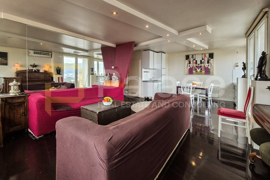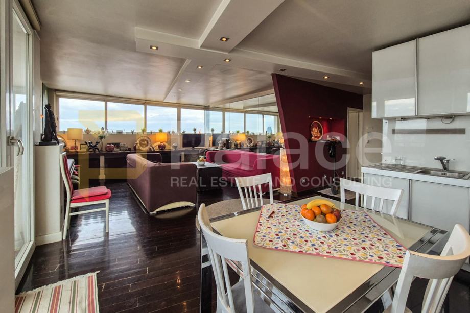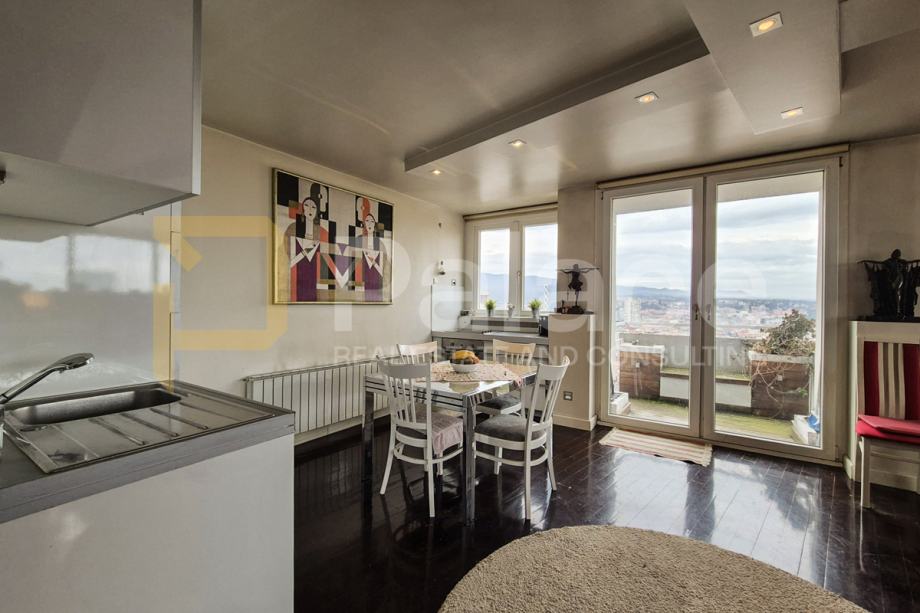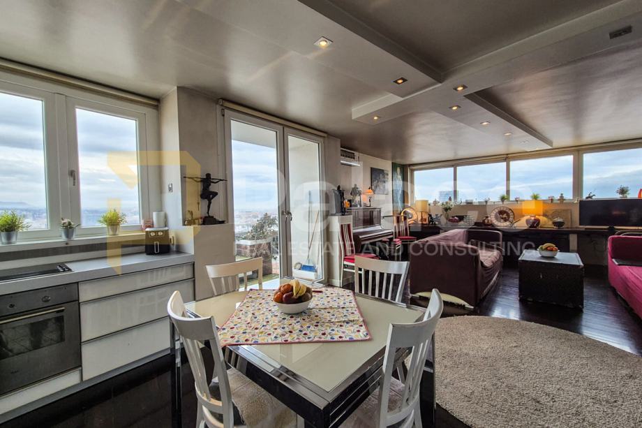 Riječ je o stanu koji pruža otvoreni panoramski pogled na grad, uz rijetku prednost da se na katu nalaze samo dva stana te dodatna zajednička terasa na korištenje.