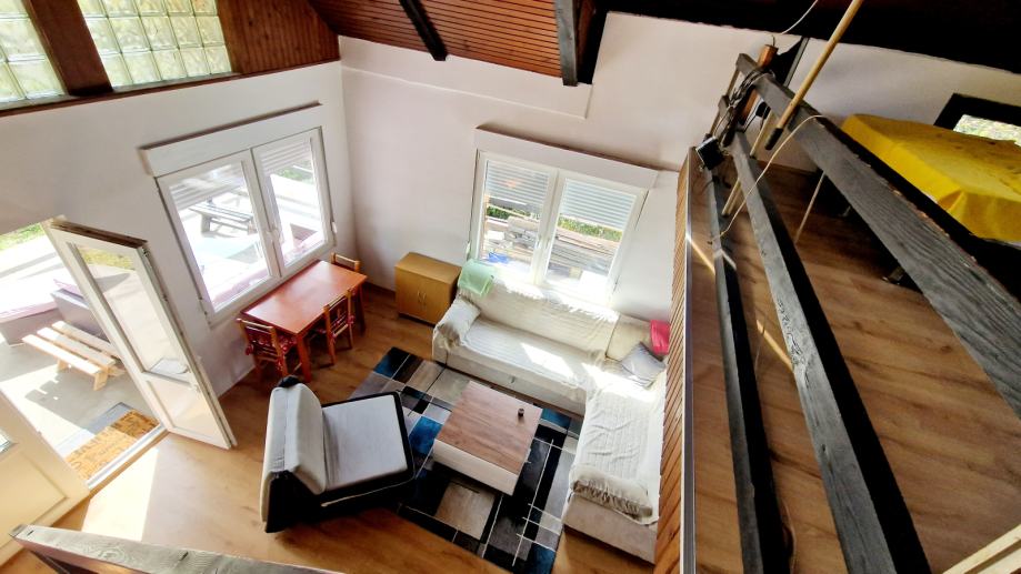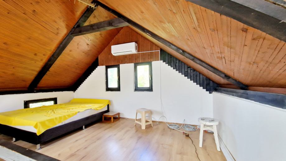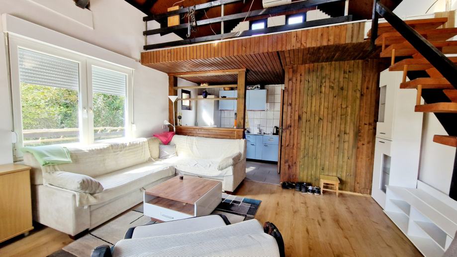 Prodaje se samostojeća kuća 115 m2 okružena obiteljskim kućama i zelenilom. Sastoji se od podruma, gornja etaža u kojoj je smješten dnevni boravak sa kuhinjom i kupaonicom, te spavaćom sobom na galeriji. Kuća je u fazi uređenja, stavljena nova PVC stolarija, izolacija...