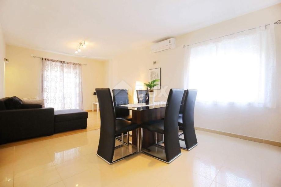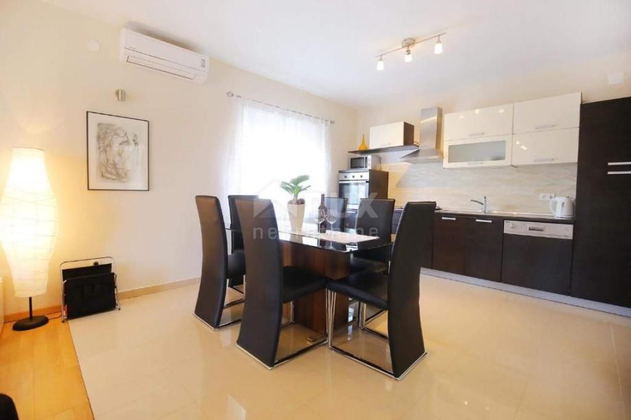 Apartman u visokom prizemlju se sastoji od dvije spavaće sobe, kuhinje s blagovaonicom i dnevnim boravkom, terase te kupaonice.
