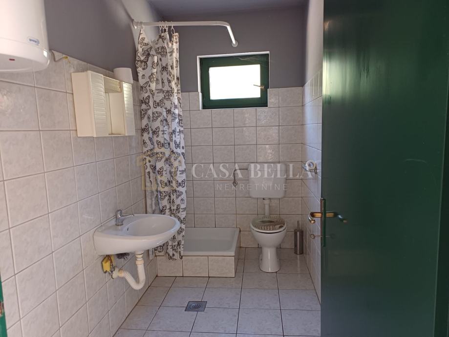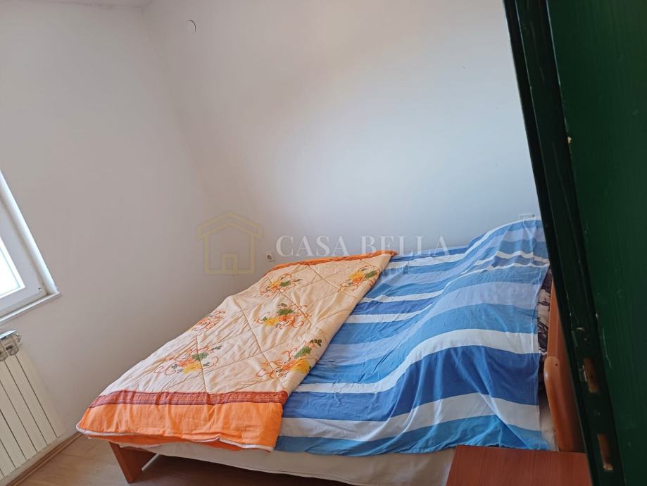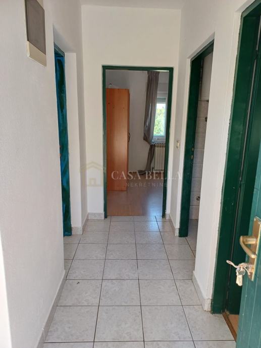 U prizemlju se nalazi garaža koja se lako može prenamijeniti u poslovni prostor ili dodatnu stambenu jedinicu, pružajući dodatnu fleksibilnost. Na katu je djelomično namješten stan koji uključuje ulazni hodnik, dvije spavaće sobe, kuhinju s blagovaonicom, kupaonicu s WC-om te natkrivenu terasu s koje se pruža predivan pogled na okolinu.