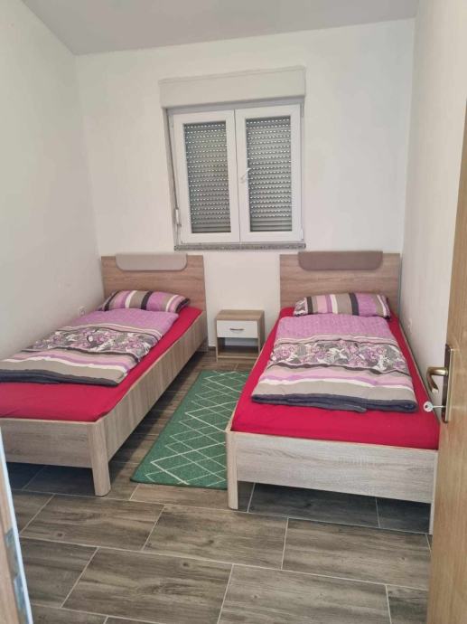 Posredujemo u najmu privatne kuće u Poljica Brigu. Kuća je idealna za radnike budući da ima svoje dvorište, te u njoj nema drugih stanara. Kuća se sastoji od ulaznog hodnika, kuhinje s blagovaonicom, dnevnog boravka, 2 spavaće sobe, kupaonice s wc-om i prostrane terase (30 m2). Moguć je prihvat do 5 radnika, a cijena je fiksna neovisno o broju radnika, te iznosi 1000€, te uključuje sve režije. Bračni krevet na slici je zamijenjen sa 2 odvojena. Najam je moguć od 5.7., te se nekretnina iznajmljuje na dugoročan period. Agencijska provizija je jedna mjesečna najamnina. Za više informacija i dogovor oko razgledavanja obratite se našem agentu na 091/3014422.