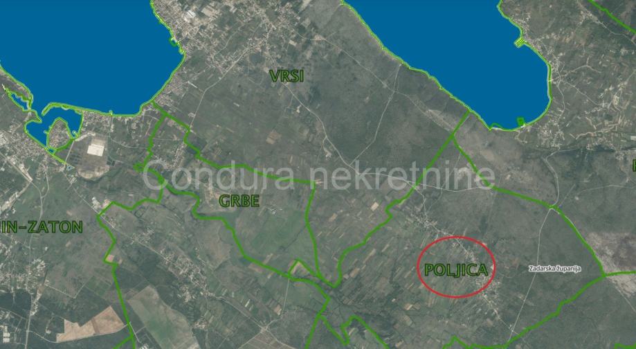 Poljica (Vrsi) - na prodaju je građevinsko zemljište površine 1000 m2 pravilnog oblika u mirnom okruženju.