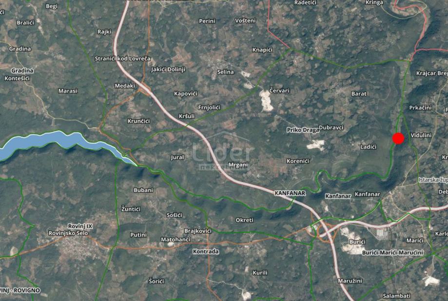 - Zemljište od 13.270 m2 se nalazi blizu sela Vidulini, Kanfanar. Naime od Vidulina, bijelim putem oko 3,5 km zavojitom cestom dolazimo do parcele. Taj dio je dosta nenaseljen, te je uzdignut nad limskom valom, na njenom suhom kraju.