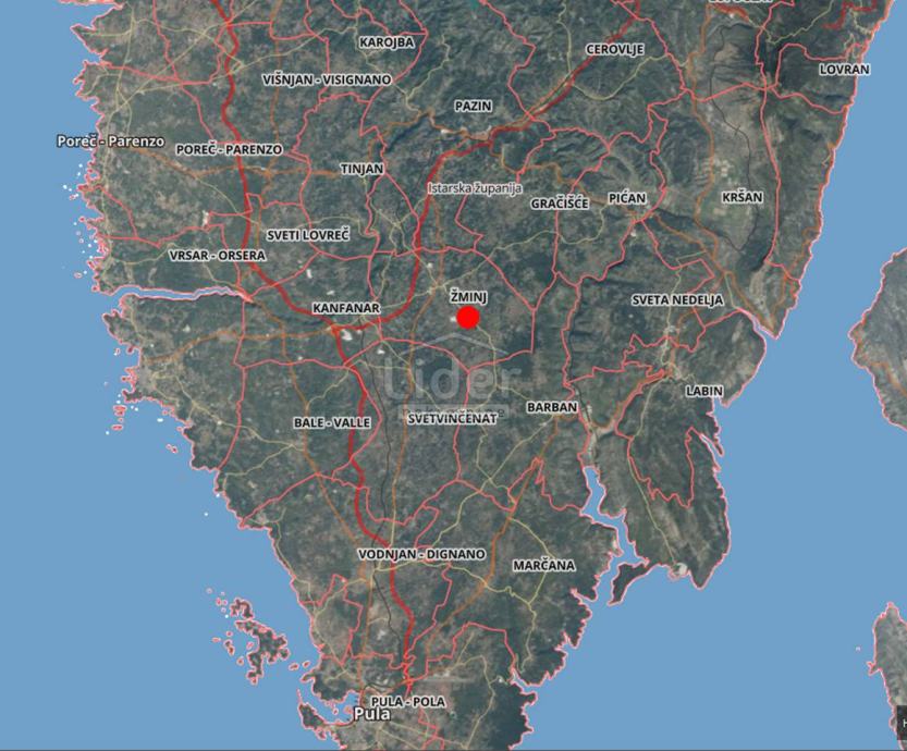 -Zemljište 3 km udaljeno od Žminja od 13.207 m2 se nalazi tik uz glavnu prometnicu Žminj – Barban. Zemljište je prema cesti širine 150 metara a dubine oko 130 metara, okruglastog oblika. Zemljište se nalazi 150 metara od naseljenog mjesta.