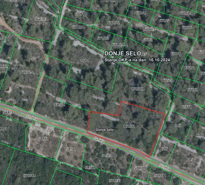 k.č 1605/1 = 2357 m2 - naslanja se na glavnu cestu u dužini cca 63 metra.