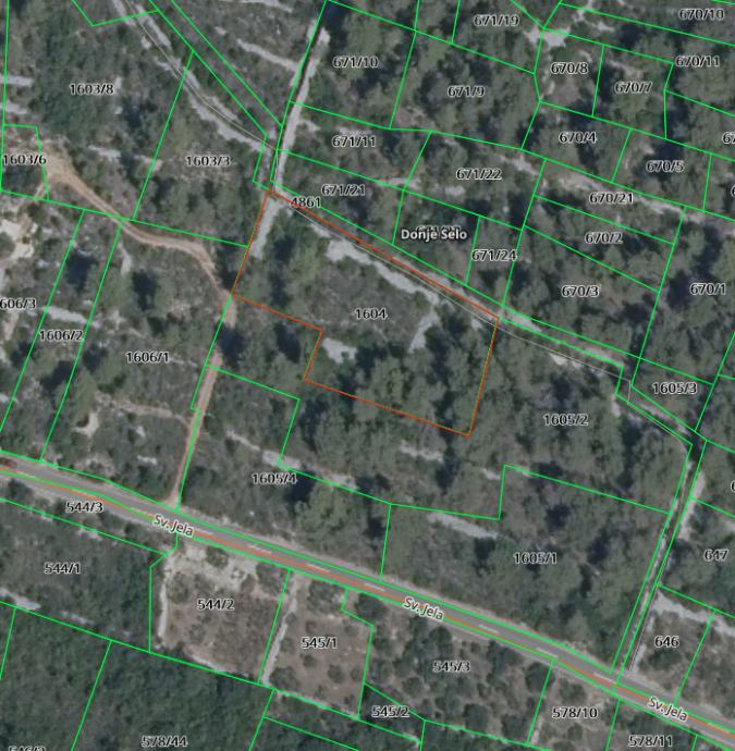 k.č. 1604 = 2378 m2 - malo uvučena, postoji 50 metara makadamskog puta od glavne ceste.