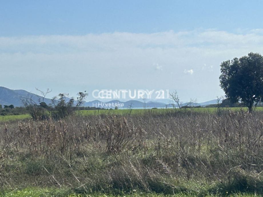 Sa zemljišta se pruža pogled na planinu i na Vransko jezero u daljini.