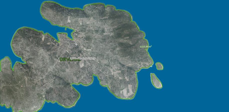 The land is located on the island of Drvenik Veliki, and borders the Construction area.