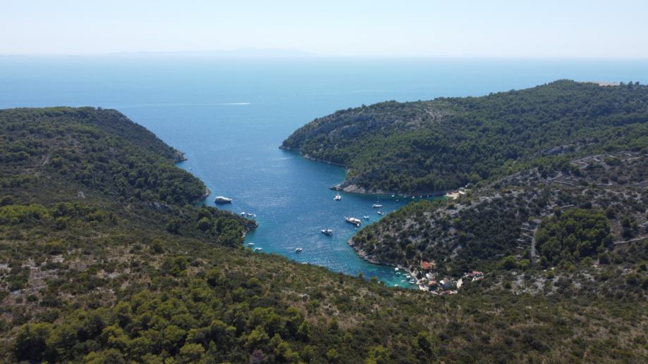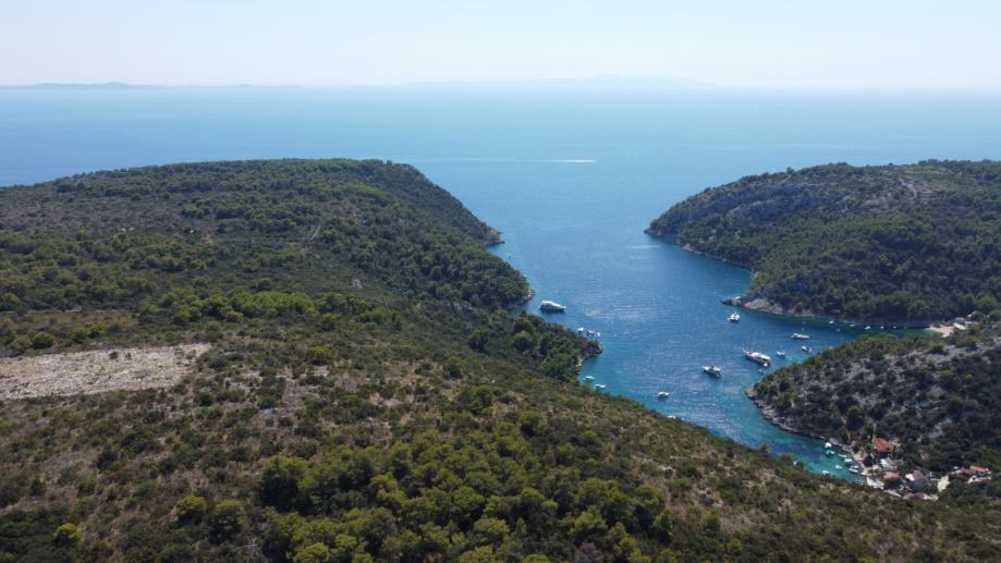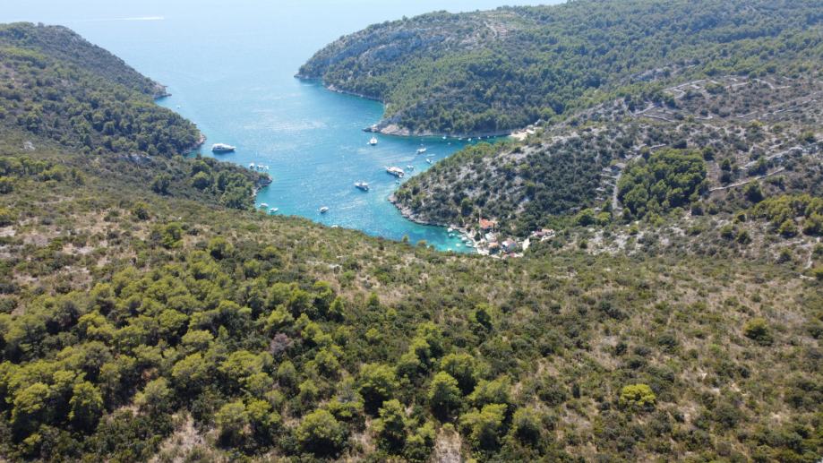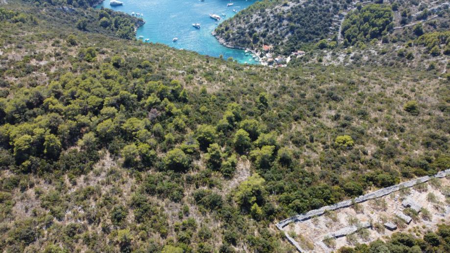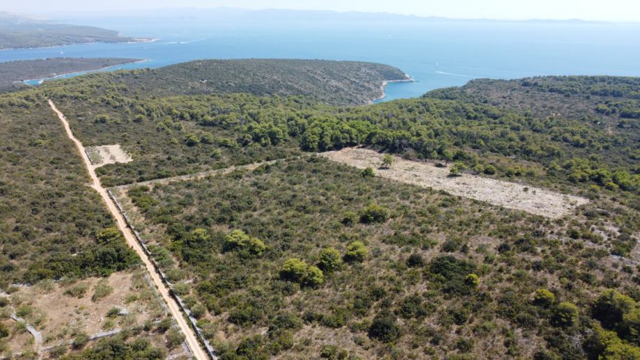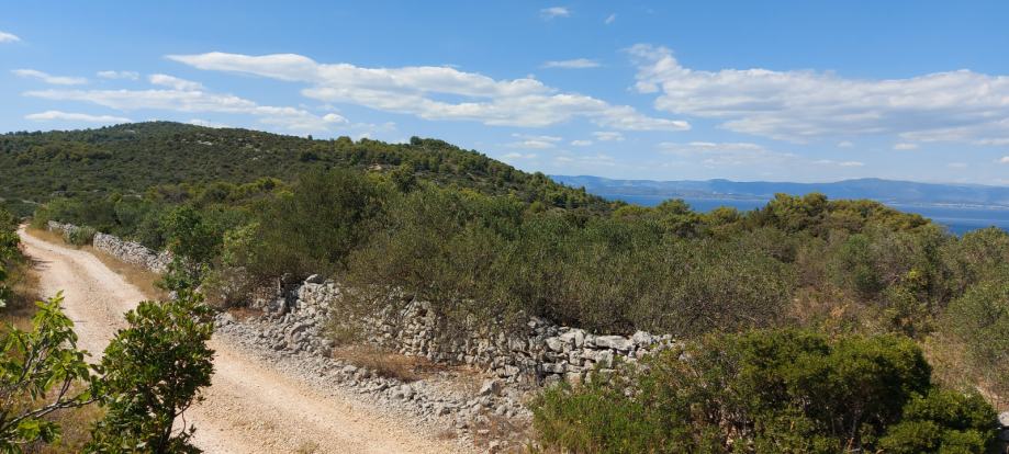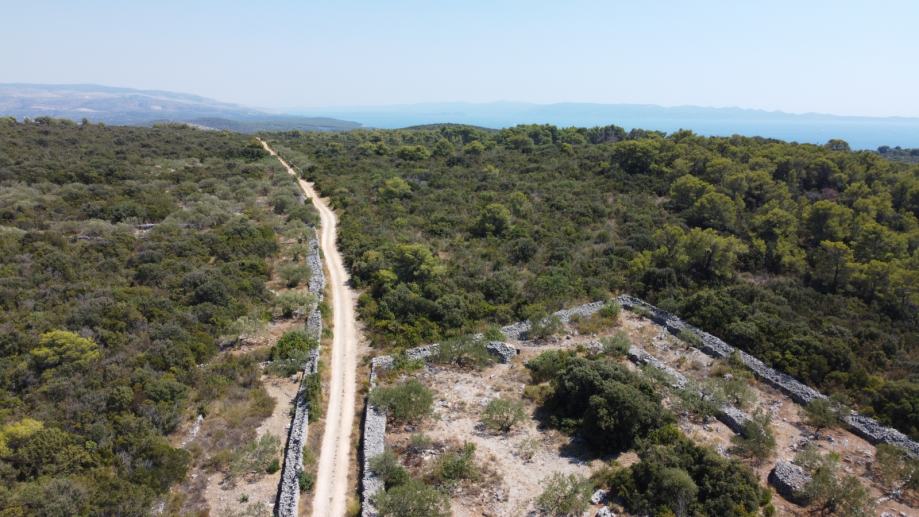 Otok Šolta, Gornje Selo, poljoprivredno zemljište površine 13700 m2, južna strana otoka, 250 metara do mora i uvale Stračinska - Sajtija, pravilnog kvadratnog oblika, široki pristupni put direktno na parceli. Cijena 8 EUR / M2.