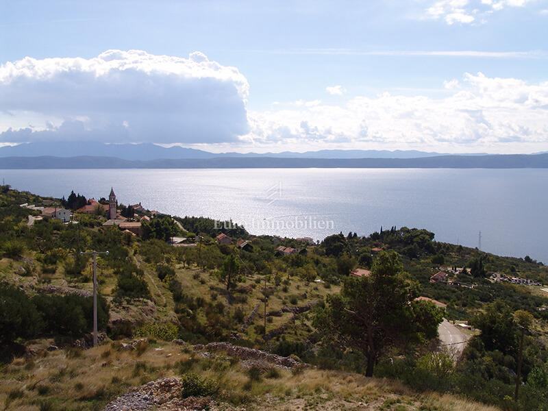 Poljoprivredno zemljište površine 4.000 m² u Gornjoj Podgori, s kojeg se pruža fantastičan pogled na more i otoke. Na zemljištu je posađeno smilje.