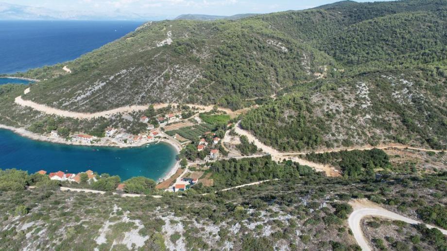 Poljoprivredno zemljište ukupne površine oko 28.000 m.kv. na području općine Jelsa, otok Hvar, uz more, preko koje prolazi široka makadamska cesta sa svom komunalnom infrastrukturom.