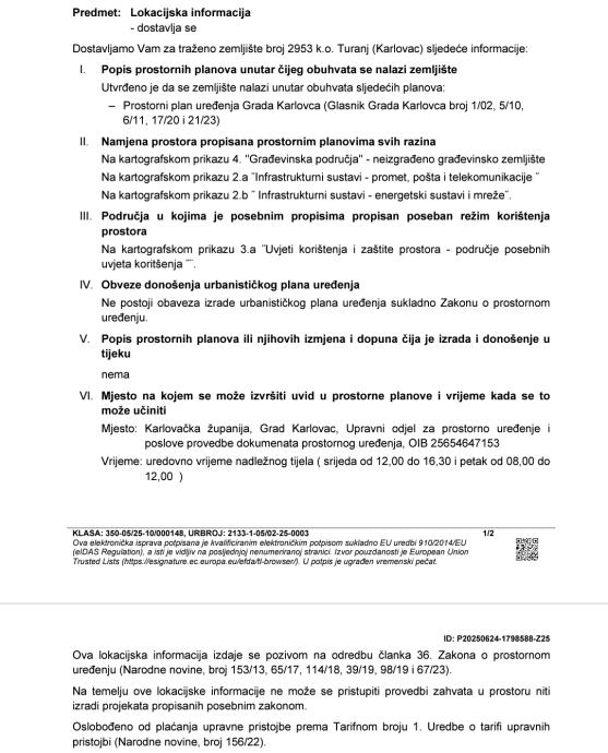Zemljište se nalazi unutar infrastrukturnih zona: pristup prometnici, elektroenergetski i komunikacijski sustavi