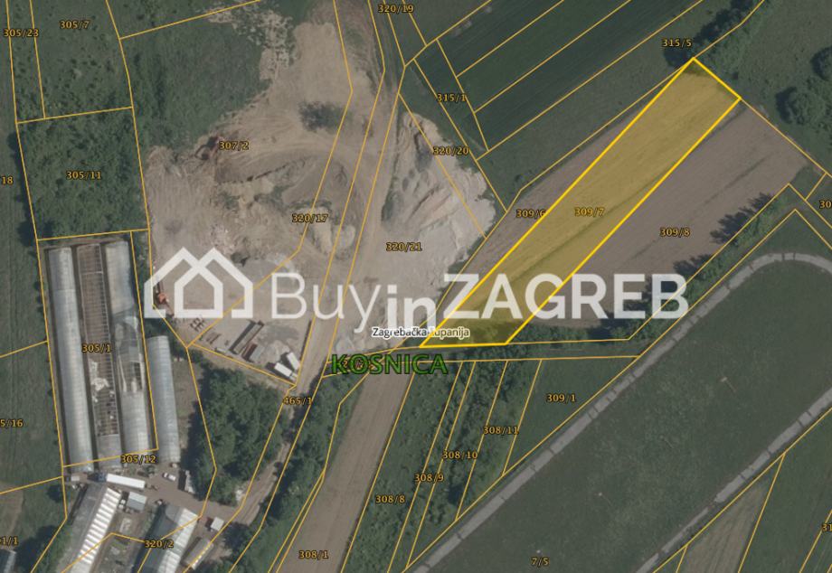 Zemljište je na k.č. 309/7, k.o. KOSNICA 331597, K.O. Velika Gorica.