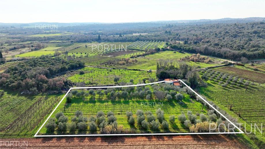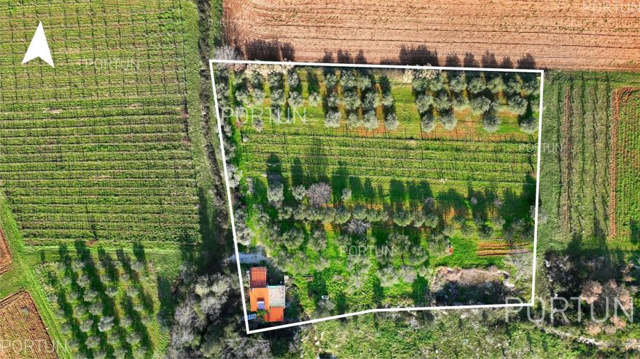 Imanje površine gotovo 4.500 m2 sastoji se od maslinika, par redova vinove loze i kuće površine 68m2. Kuća je legalizirana na temelju rješenja o izvedenom stanju i evidentirana u katastru.