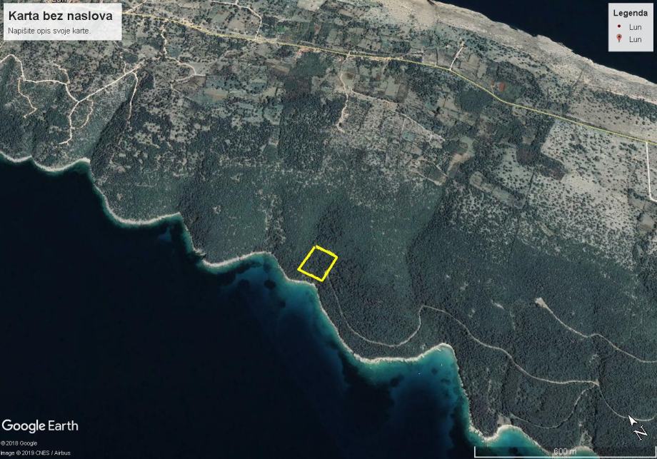 Zemljište se nalazi između naselja Lun i Dudići na Pagu odmah do mora. Do zemljišta vodi protupožarni put koji se već duži niz godina ne koristi. Katastarski broj zemljišne čestice je 346/1, zk odjel Pag, katastarska općina 324426 Lun, zk. uložak 1922. Cijena je 8 € /m2.