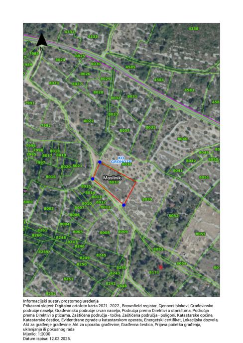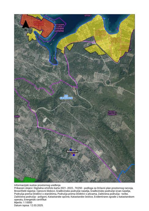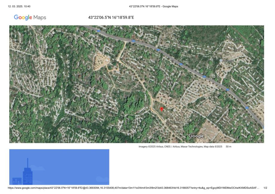 Prekrasno poljoprivredno zemljište savršeno za maslinarstvo i uživanje u prirodi. Očišćeno prije nekoliko godina mehanizacijom bez škrapa i kamenja spremno za obradu. Na zemljištu se nalazi pet stoljetnih maslina koje daju vrhunski urod te nekoliko mlađih stabala. Ograđeno autentičnim dalmatinskim suhozidom koji osigurava privatnost i tradicionalan mediteranski ugođaj. Smješteno uz odličan pristupni put lako dostupno vozilom.