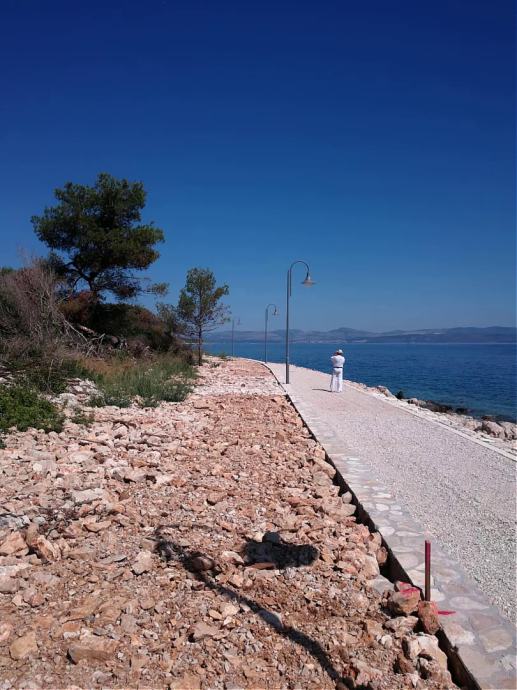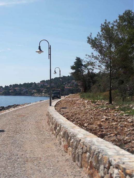 Zemljište se proteže od šetnice na moru (fronta cca 70 m) dužine cca 330 m do puta na vrhu zemljišta.