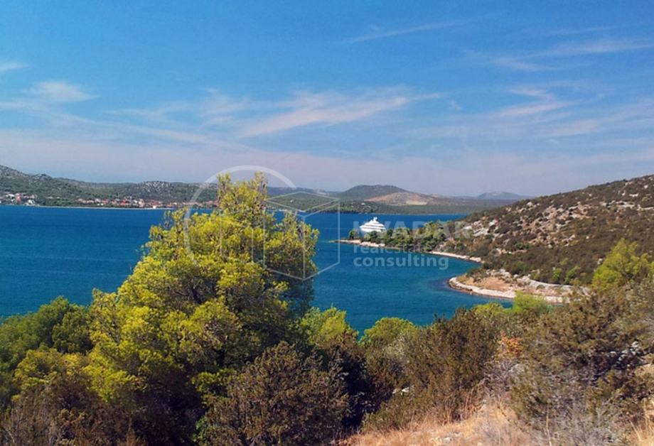 Poljoprivredno zemljište od 15000m2 smješteno je uz morsku obalu, katastarske općine Vrulje Bilice, 10-tak km od Šibenika sa kojeg se pruža prekrasan panoramski pogled.
