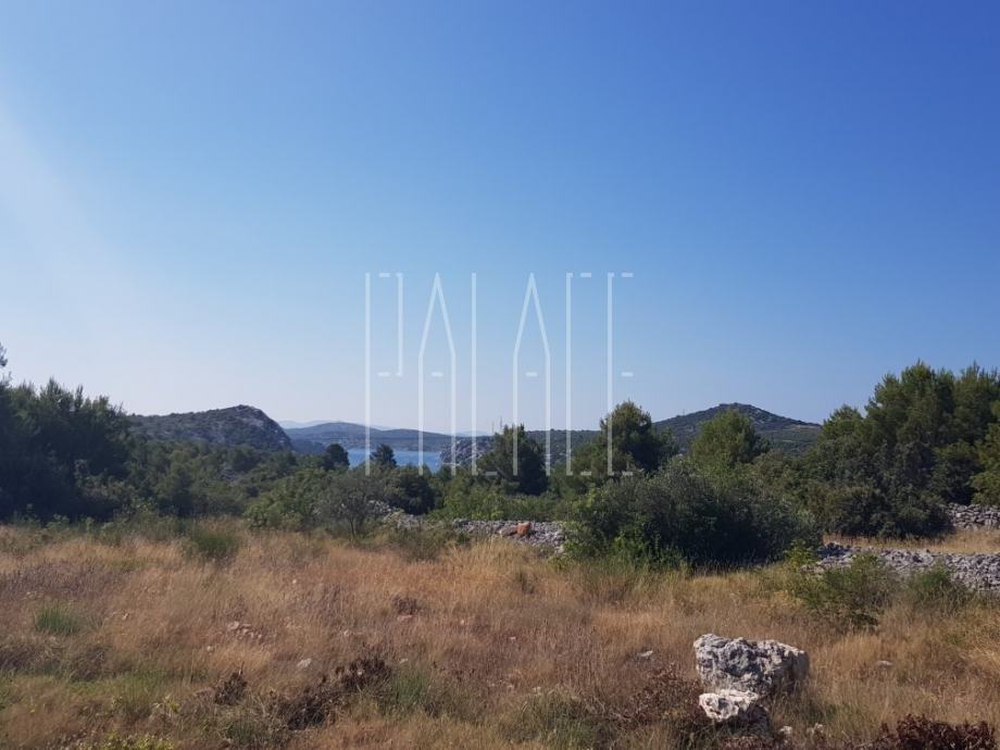 Na prodaju je poljoprivredno zemljište površine 3300 m2, na uzvisini s predivnim panoramskim pogledom na šibenski kanal i more.