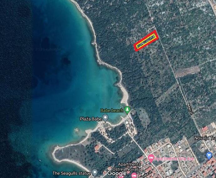 Prodaje se poljoprivredno zemljište površine 4321 m2 u Novalji iznad plaže Babe.