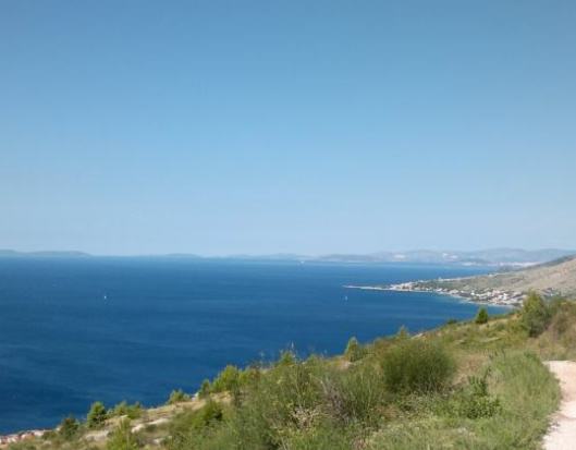 Das Ackerland befindet sich einige km südlich von Omis, am Bergfuss, ganztägig besonnt, mit offener Sicht zum Meer.