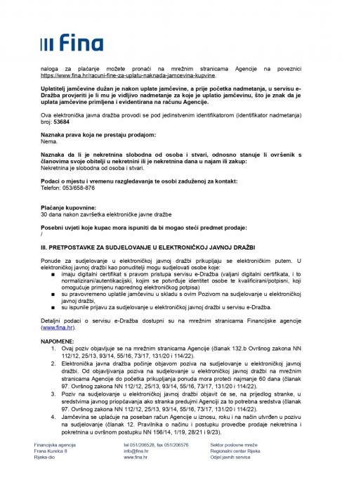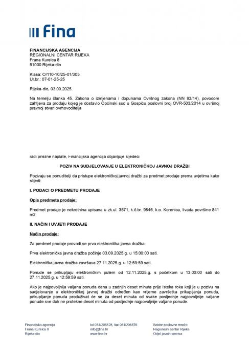 Prva elektronička javna dražba počinje 03.09.2025.g. u 15:00:00 sati.