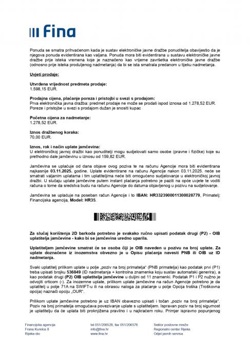 Elektronička javna dražba završava 27.11.2025.g. u 12:59:59 sati.