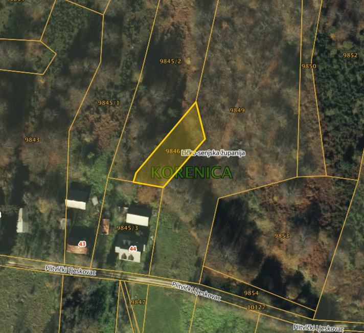 Predmet prodaje je nekretnina upisana u zk.ul. 3571, k.č.br. 9846, k.o. Korenica, livada površine 841