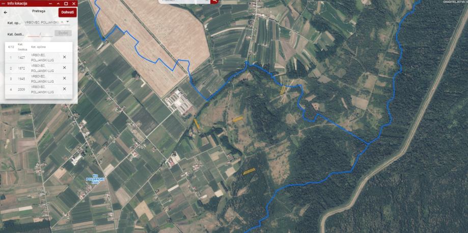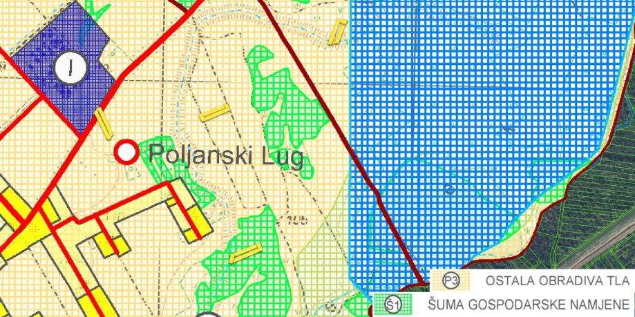 Predmetna nekretnina je poljoprivredno zemljište kojeg čini obuhvat četiri nekonsolidirane čestice nepravilnog, izduženog oblika ukupne površine 6417 m2. Teren zemljišta je ravan, neograđen, sa pristupom poljskim putevima koji su zarasli ili u naravi nisu izvedeni. Lokacija nije komunalno opremljena i na predmetnom obuhvatu nema izvedenih priključaka. Prema PPUG Vrbovec dio čestica predmetne nekretnine se nalaze u zoni poljoprivredne površine planske oznake P3 - ostala obradiva tla (4392 m2), dijelom u zoni planske oznake Š1 - šuma gospodarske namjene (2025 m2). Na području oznake P3 moguća je izgradnja gospodarskih građevina u funkciji obavljanja poljoprivredne i stočarske djelatnosti, te uzgoja ribe i životinja (farma) u ovisnosti o veličini posjeda čiju minimalnu površinu definiraju vrsta i intenzitet poljoprivredne djelatnosti. Zona oznake Š1 namjenjena je prvenstveno za gospodarstvo u smislu eksploatacije drva za proizvodnju drvnih proizvoda.