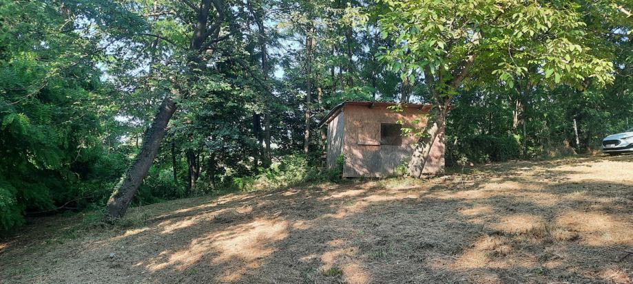 Na zemljištu je drvena kuća 4*2,5 m i oko 80 stabala jabuka.