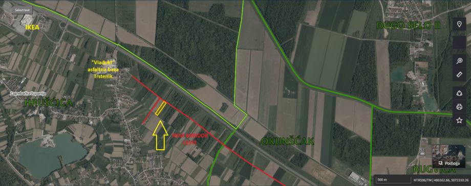 Prodajem zemljište površine 10.184 m² u Trsteniku Nartskom, uz novi planirani koridor ceste između Ikea trgovačke zone i gospodarske zone Rugvica (M SAN).