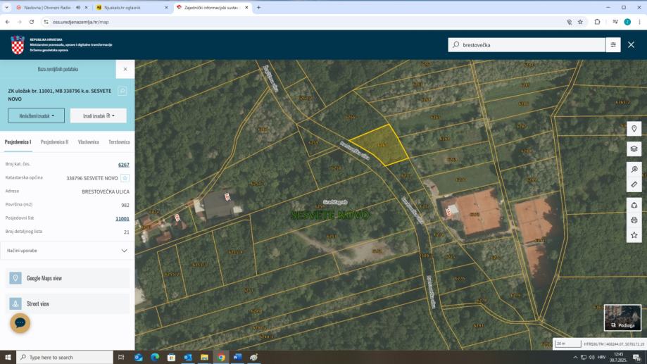 Prodajem šumu u Starom Brestju u Sesvetama, s obje strane ceste: 1151m2 + 982m2.