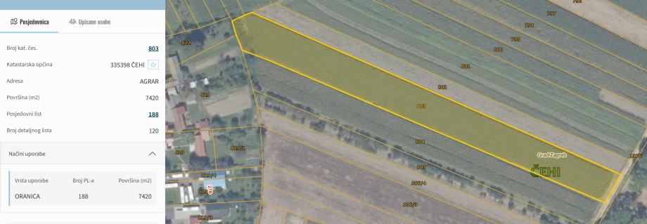 Prodaje se poljoprivredno zemljiste u Čehima površine 7420m2 pravokutnog oblika cca 300m x 24m.