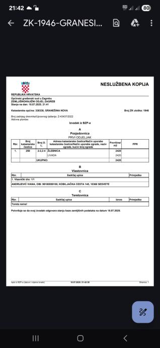 Prodaje se zemljište na odličnoj lokaciji unutar građevinskog područja grada Zagreba u ulici Vrbanići II odvojak.
