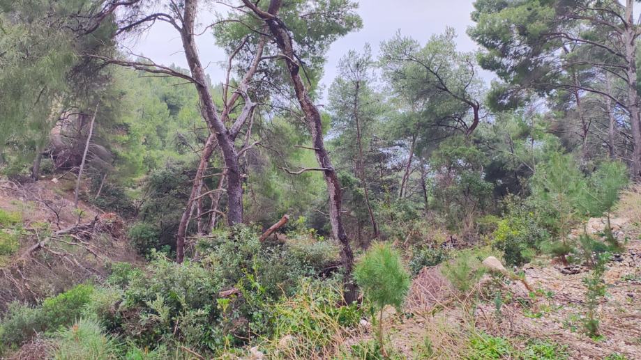 Zemljište se proteže širokom padinom iznad zaljeva te pruža prekrasan pogled prema moru i okolnim otocima. Zemljište je južne orijentacije što je odlično za kupce koji žele investirati u solarne panele.