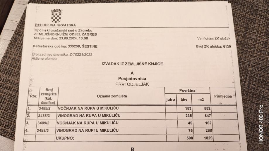 Na jednoj od slika je zemljišnoknižni izvadak