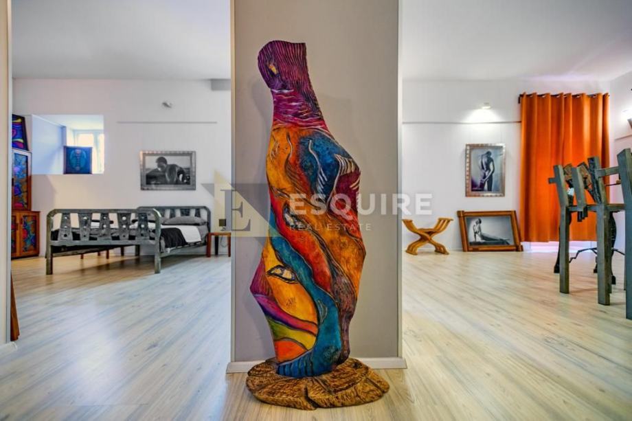 Na prodaju je jedinstveni umjetnički stan smješten na Poluotoku, u samom srcu povijesne jezgre Zadra. Stan se prostire na 86 m² stambene površine i nalazi se na drugom katu povijesne zgrade. Prostor je koncipiran kao open space, inspiriran izgledom umjetničke galerije, što mu daje poseban karakter i ugođaj.