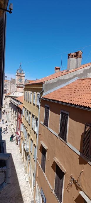 Prodaje se potpuno renoviran i moderno opremljen stan na jednoj od najatraktivnijih lokacija u Zadru – svega 30 m od Narodnog trga, s direktnim pogledom na Kalelargu.