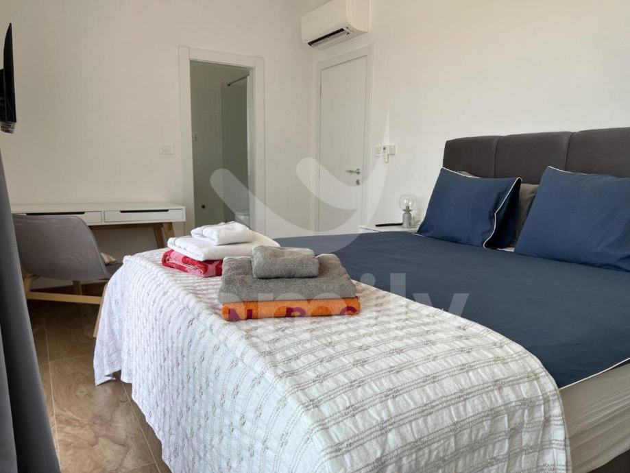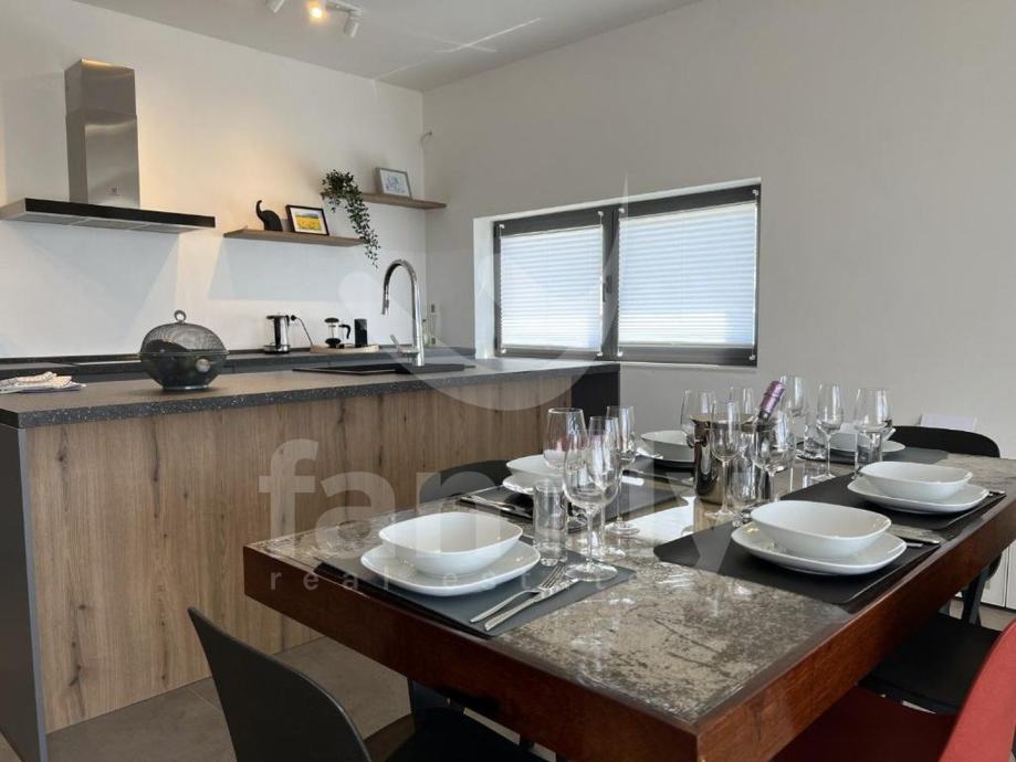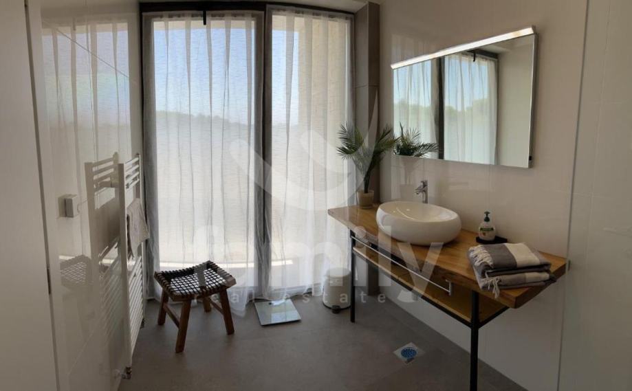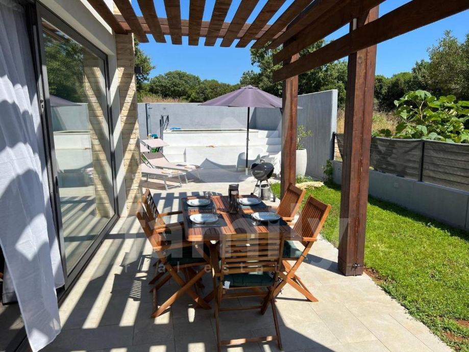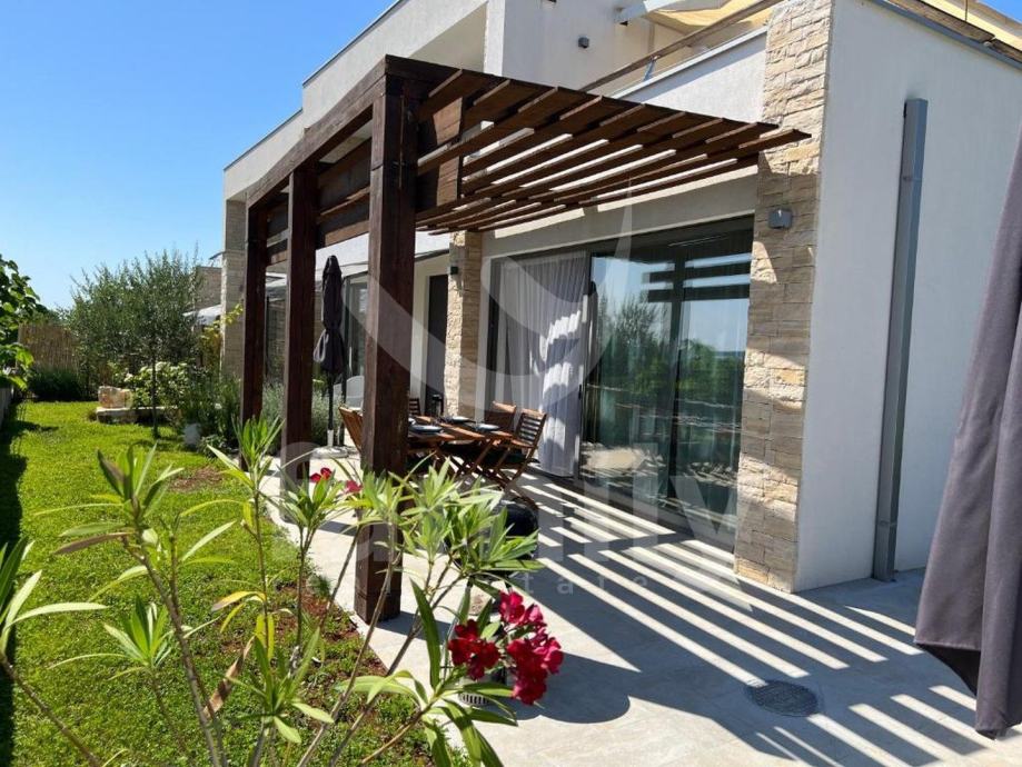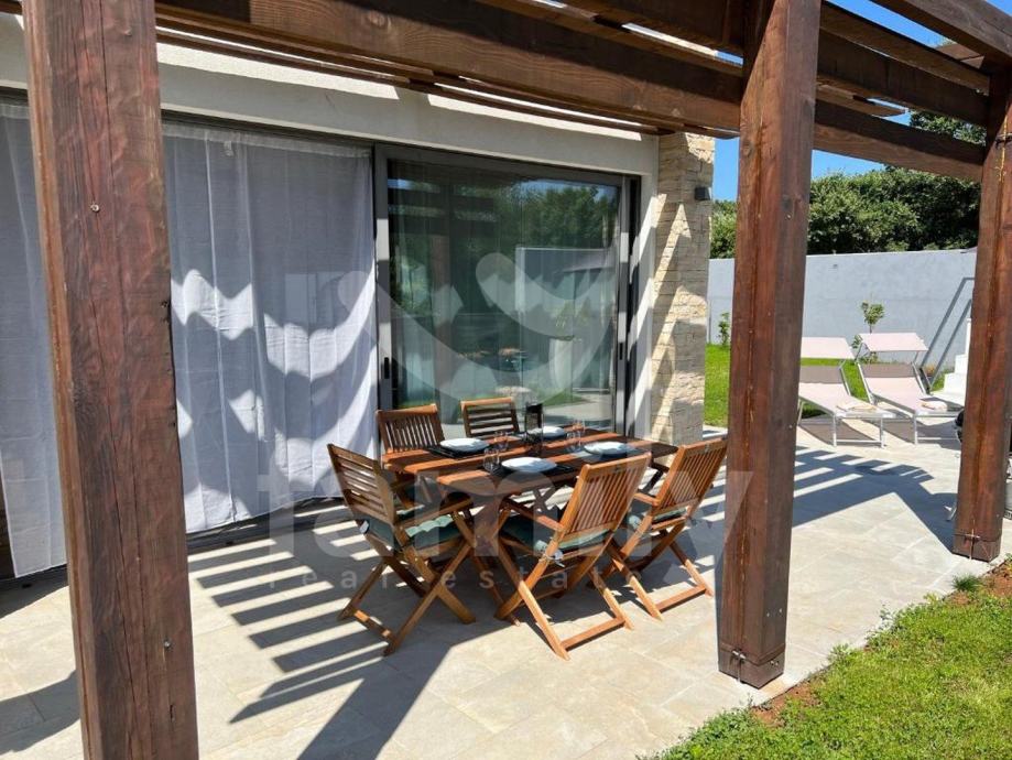 Upravo u Peroju nalazi se ova poluugrađena luksuzna villa ukupne površine 150 m2. Prostire se na dvije etaže, prizemlje i kat. U prizemlju se nalazi toalet, kupaonica, dvije spavaće sobe i svaka ima izlaz na zajedničku terasu površine 100 m2 sa fenomenalnim otvorenim pogledom na more i Brijunsko otočje, prostrani osvijetljeni dnevni boravak, kuhinja i blagovaonica. Na katu ville se nalazi prostrana spavaća soba sa garderoberom i kupatilom i terasa. Na okućnici se smjestio bazen iz kojeg se pruža pogled na more, sunčalište i dio za roštiljanje što upotpunjuje cijelokupni ugođaj. Villa se prodaje kvalitetno namještena sa svim kuhinjskim aparatima i elementima, opremljena ALU stolarijom dvoslojnih stakala te odvojenih brojila za struju i sa zajedničkim brojilom vode, sustav grijanja i hlađenja reguliran je sa po 4 jedinica klima uređaja. Uspješno se iznajmljuje tijekom turističke sezone. Nekretnina je smještena u oazi mira, okružena prirodom, a udaljenost do prvih uređenih plaža je svega pet minuta pješke.