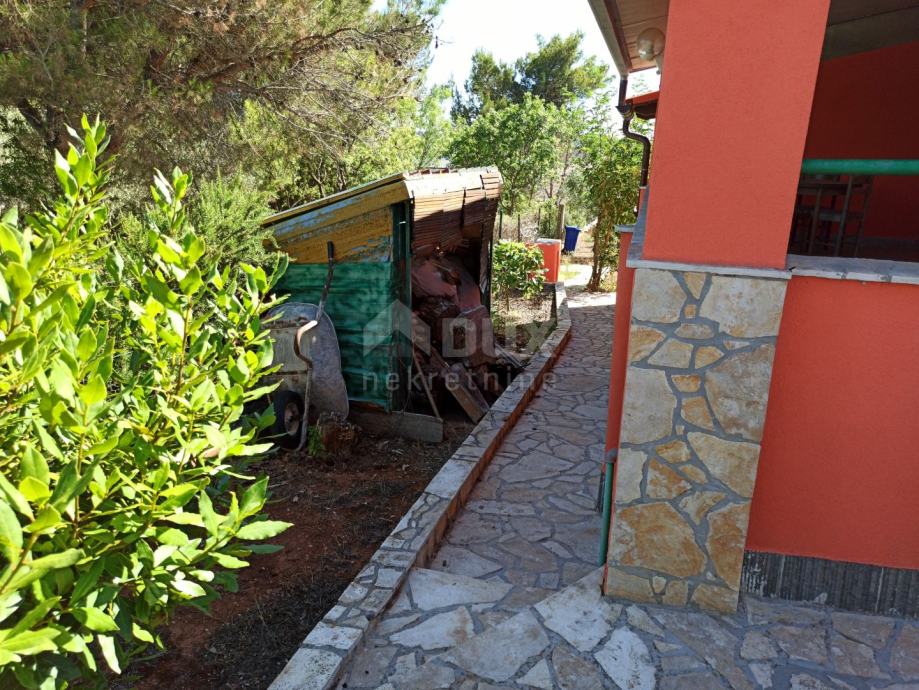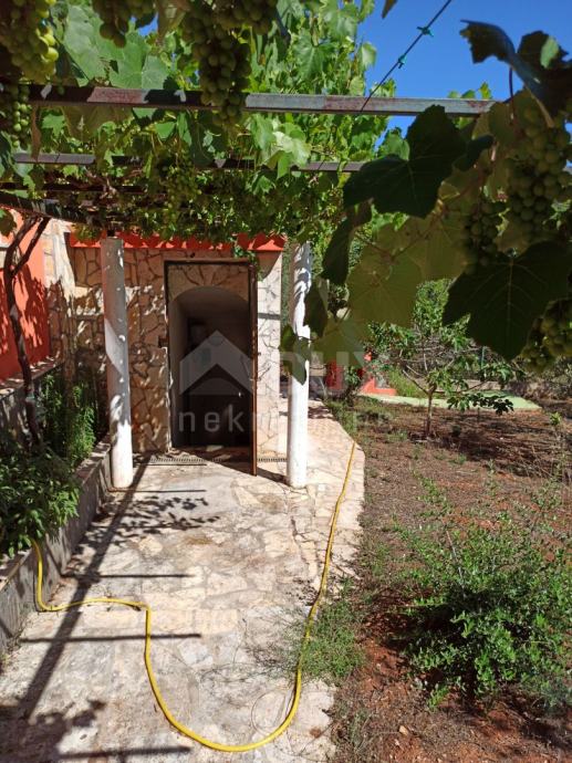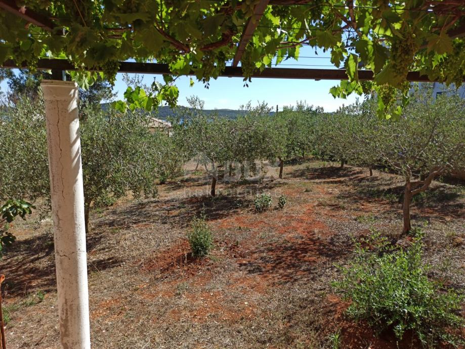 Okućnica je površine 920 m2 i s koje se pruža pogled direktno na more, između mnoštva domaćih maslina, omogućuje odmor za dušu i tijelo.