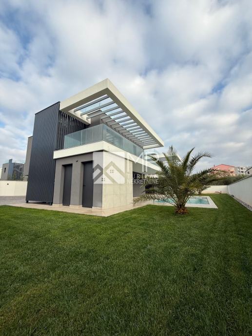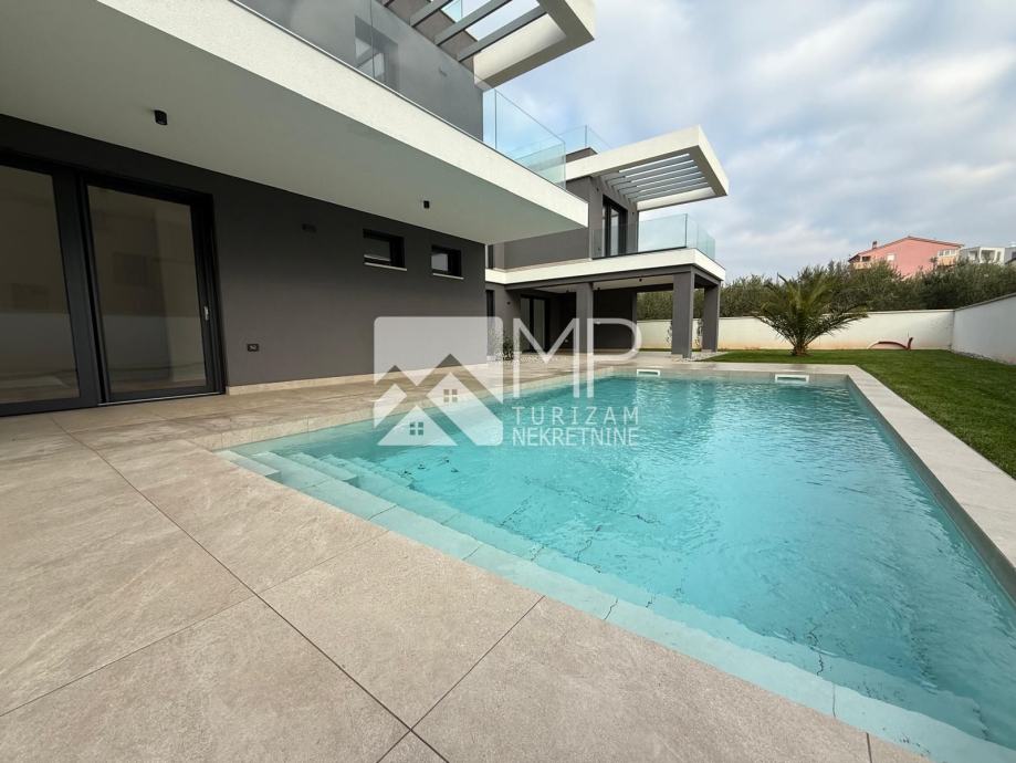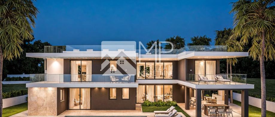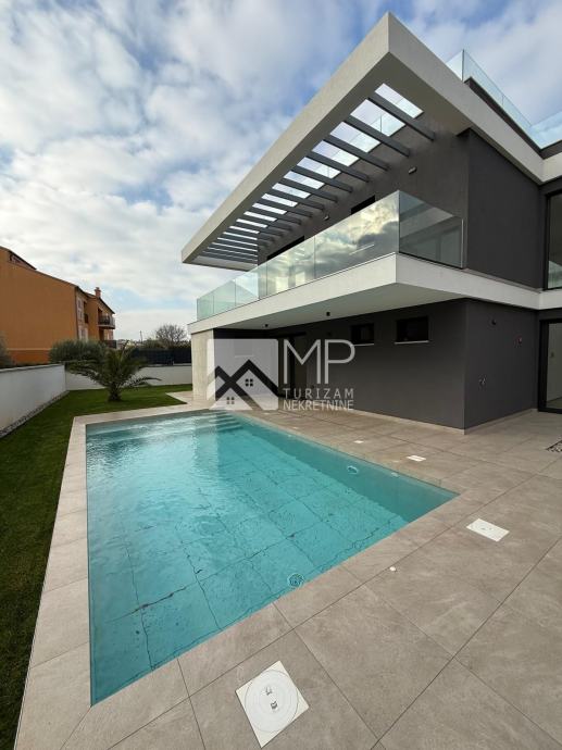 Na iznimnoj lokaciji u Pomeru, svega 50 metara od mora, prodaje se moderna i arhitektonski impresivna samostojeća vila s četiri prostrane spavaće sobe, svaka s vlastitom kupaonicom, plus dvije dodatne gostinjske toalete.