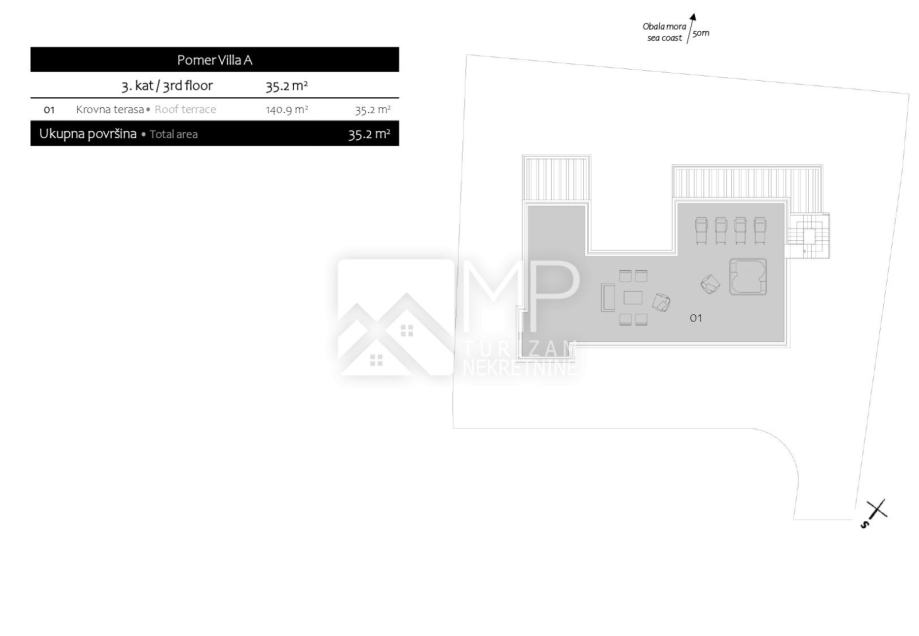 • Vanjske stepenice vode na krovnu terasu s panoramskim pogledom na more
