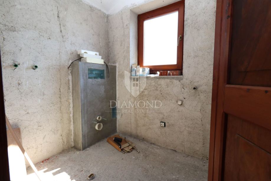 S terasa se pruža pogled na more. Kuća ima grijanje na drva i klima uređaje, a sprovedeno je i centralno grijanje (nije u funkciji).
