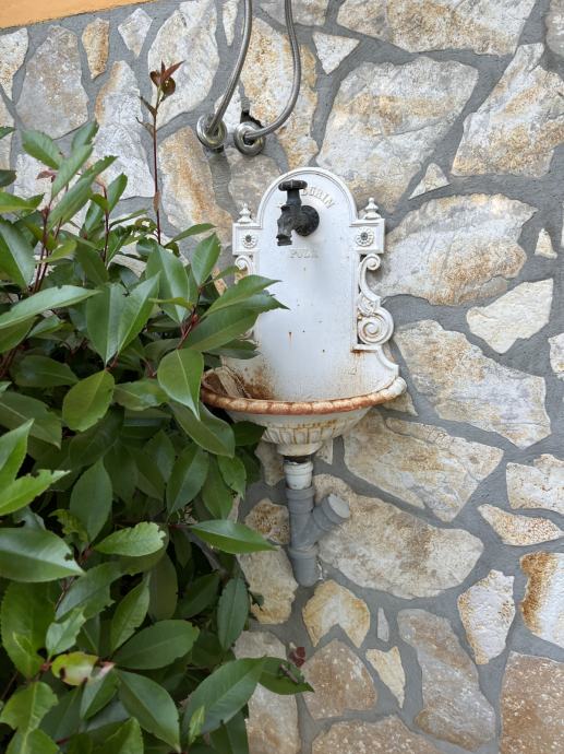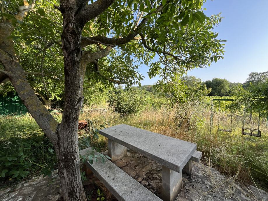 Na okućnici su zasađena stabla maslina, lješnjaka, voćke, kao i sjenica s grožđem.