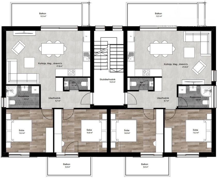 Na prvom katu su u prodaji 2 stana, a moguće ih je već sada rezervirati.
