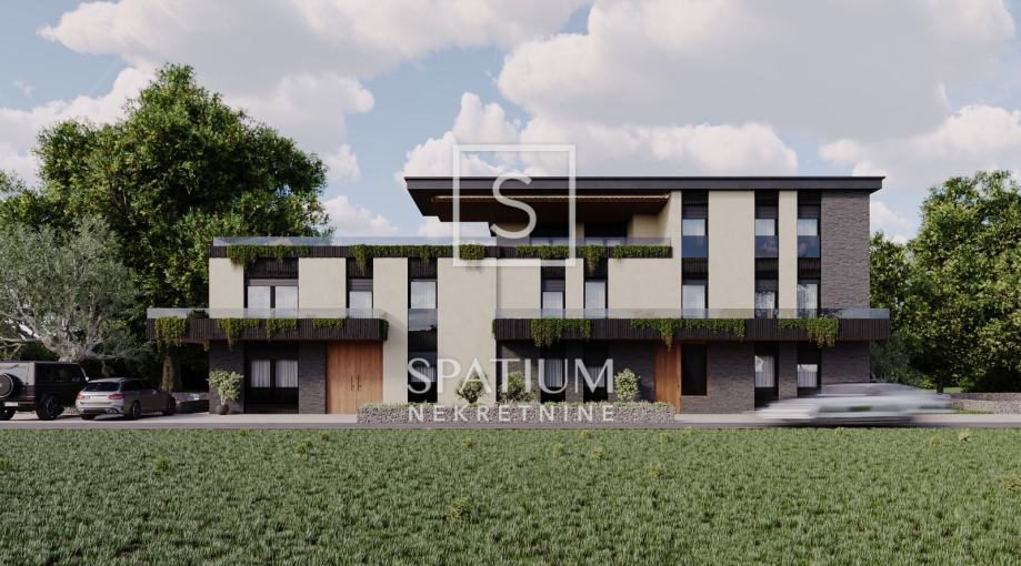 Izuzetno komforan apartman u prizemlju, nešto manje kvadrature (55,76 m2 interijer), kojeg karakterizira idealan raspored prostorija i maksimalna iskorištenost prostora. Uz dvije dovoljno prostrane spavaće sobe, tu je i prostrani dnevni boravak povezan s blagovaonom i kuhinjom. Dvostrana orijentacija osigurava dovoljno dnevnog svjetla u svim prostorijama, a postoji i izlaz na vlastito dvorište od 20m2.