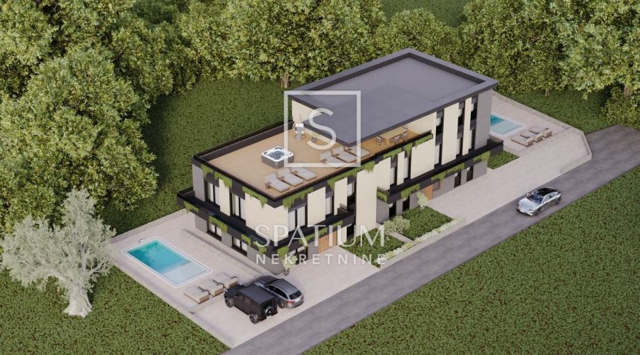 POREČ - TAR, u ponudu smo dobili moderan 2S+DB ukupne površine 129,5m2 s pogledom na more i bazenom u vrhunskoj novogradnji sa samo šest stanova.