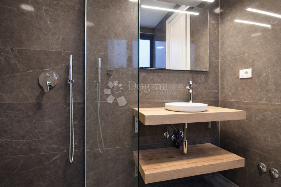 Nekretnina raspolaže s dvije spavaće sobe, od kojih glavna (master) ima vlastitu kupaonicu, walk-in ormar te izlaz na terasu. Druga kupaonica namijenjena je ostatku stana i gostima, što dodatno povećava funkcionalnost prostora.